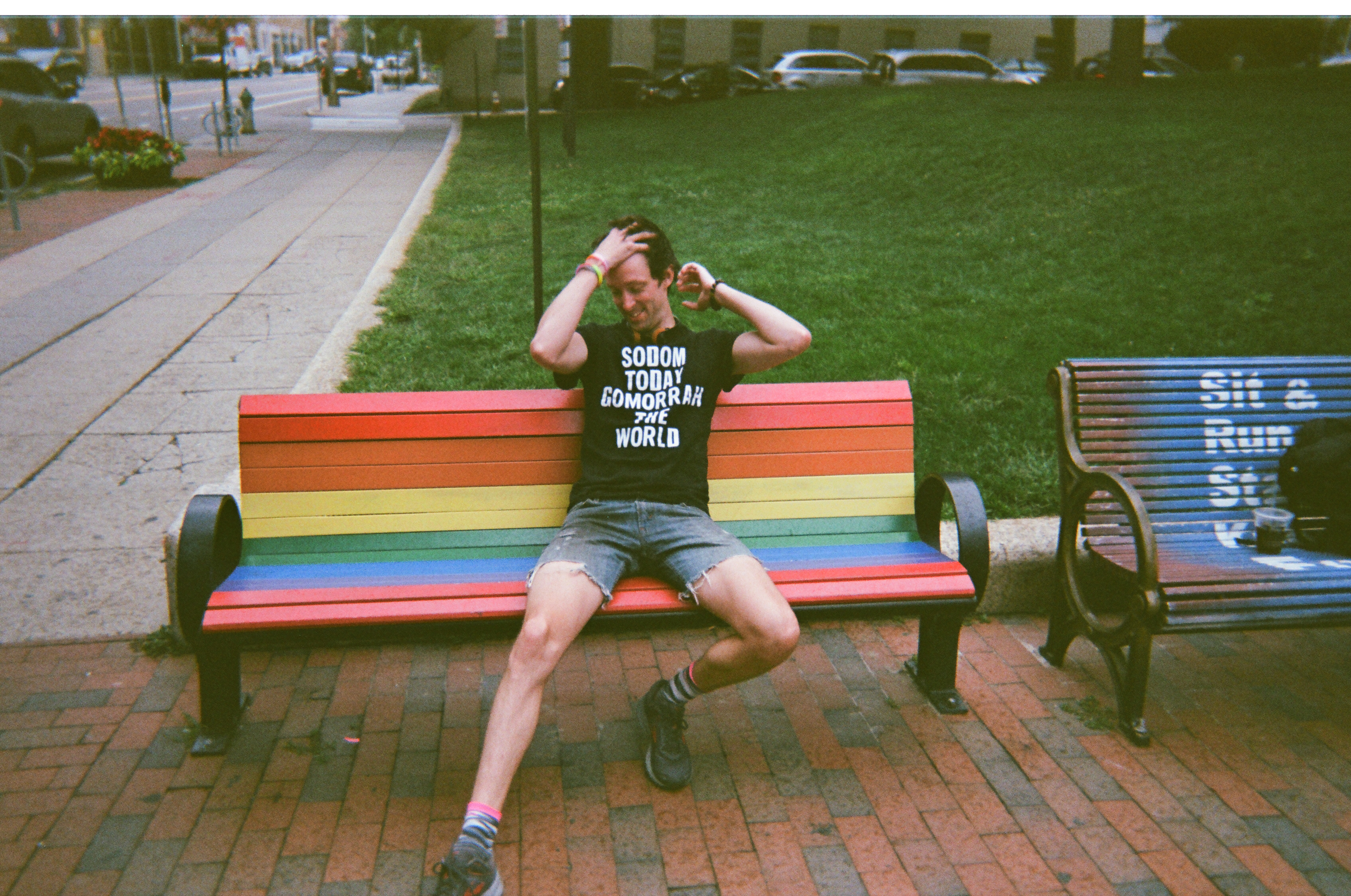 - a rainbow-colored gay bench (to represent progress—in this case, the location of the first legally wed same-sex couple in the United States)